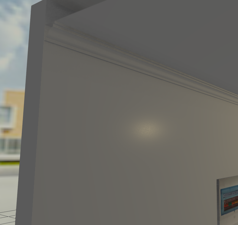 按钮,或执行下拉菜单中的“石膏线”,可进入创建装饰线的模式。将鼠标移动到墙体上,即可以看到即将创建的装饰线对象,此时,点击鼠标创建一个装饰线。